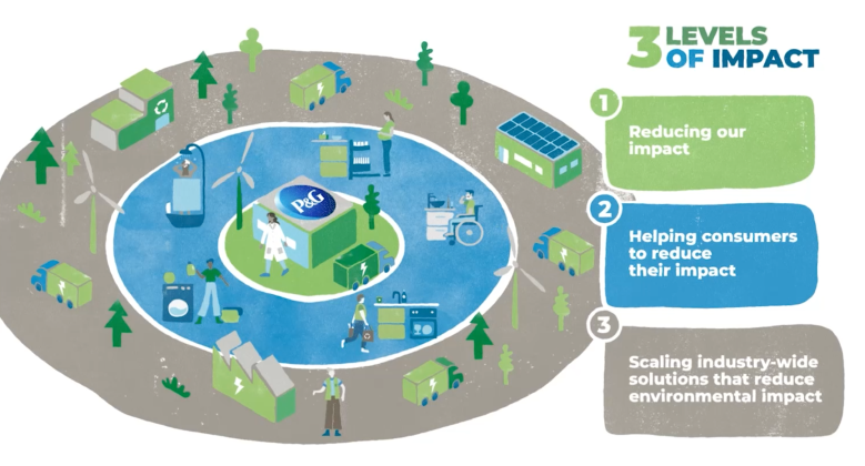 P&G also leverages third-party collaborators to validate credibility. This strategy signals progress by association and is a shortcut that immediately builds trust due to the equity third-party brands have already built (while preventing the need for consumers to comb through every technical detail themselves.)